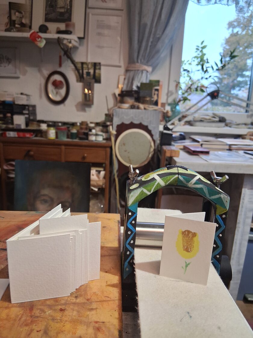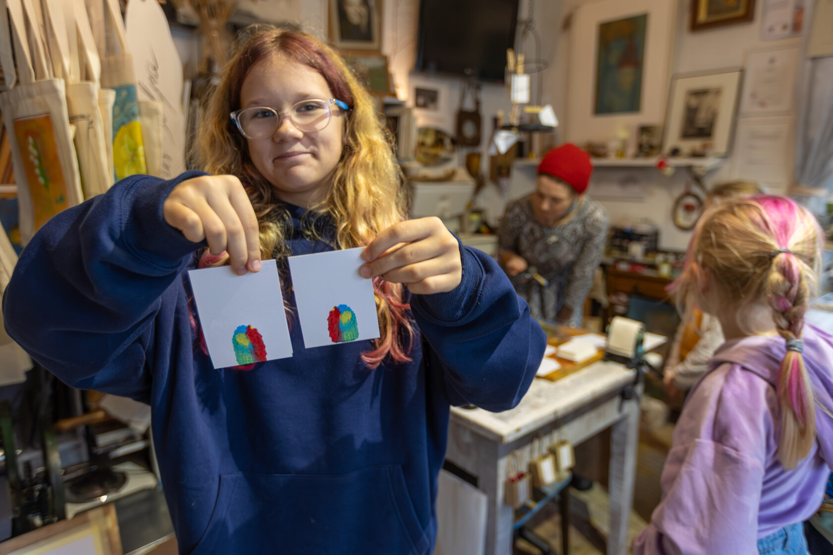 Jurmala Excursion Week at ANNA'S ART SPACE took place for 2 days, on November 23 and 25. My offer were to visit my Exhibition which is currently taking place and can be viewed until December 31, 2025; to purchase my artwork, souvenirs made by me, as well as to participate in a Graphic Art Master-class with a Small and Big Graphic Roll. Each visitor created 2 Greeting cards and an Autumn Apple print.