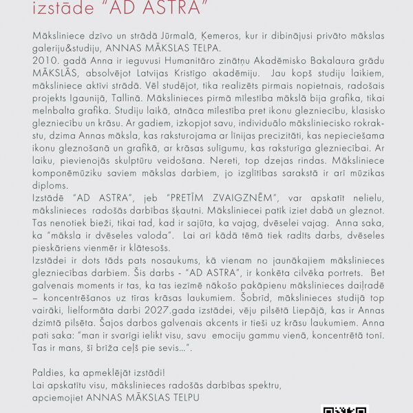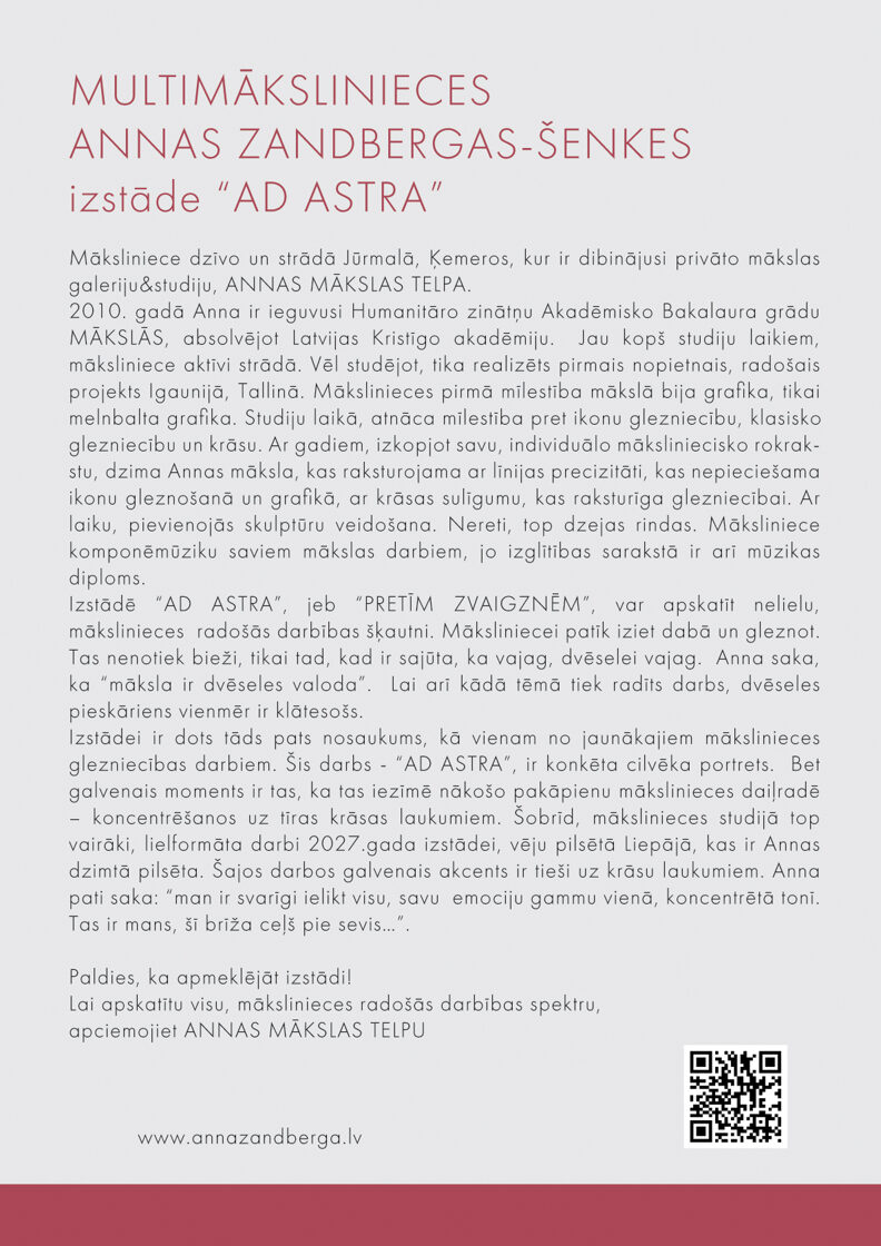 WHAT YOU WILL SEE? Plein Air paintings from different times and the work on the poster "AD ASTRA" with a portrait of a real woman. I deliberately placed this painting in the title of this Exhibition and also in the Exhibition, even though it does not fit the overall theme, in order to arouse a little intrigue - "WHY?". This painting marks a new step in my creative work. Currently, several large-format paintings are being created in my Studio for a Solo Exhibition in 2027. These are large color fields, where it is important for me to put a spectrum of emotions about my childhood. With this one, yellow painting, I "open the door" to my next step.