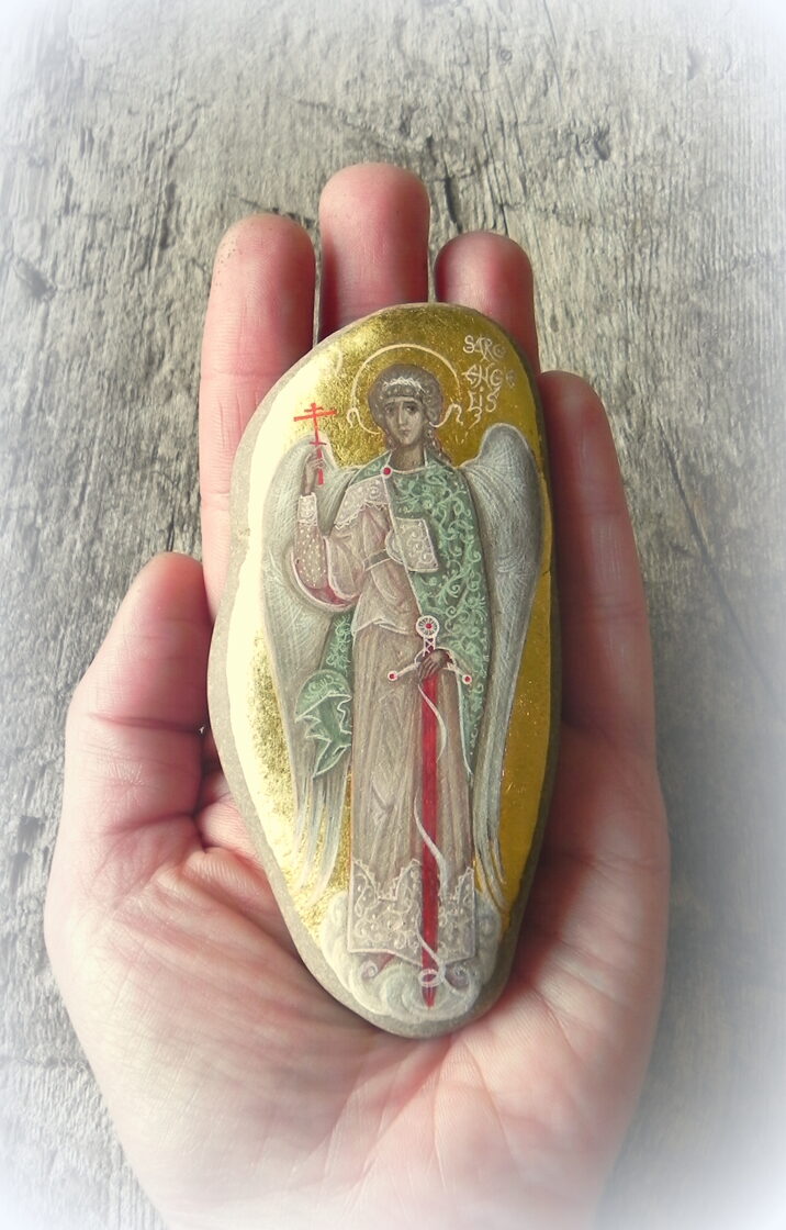 Archangel Raphael. Painted directly on stone. Egg tempera, gold 24 kar. 2020 -